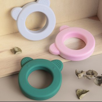 Cartoon Elephant Silicone Baby Teether with Beech Wood Ring – BPA Free, Safe Infant Toy